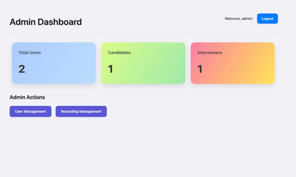 | Role-based access | Different functionalities for candidates, interviewers, and admins | Tailored experiences for each user type |