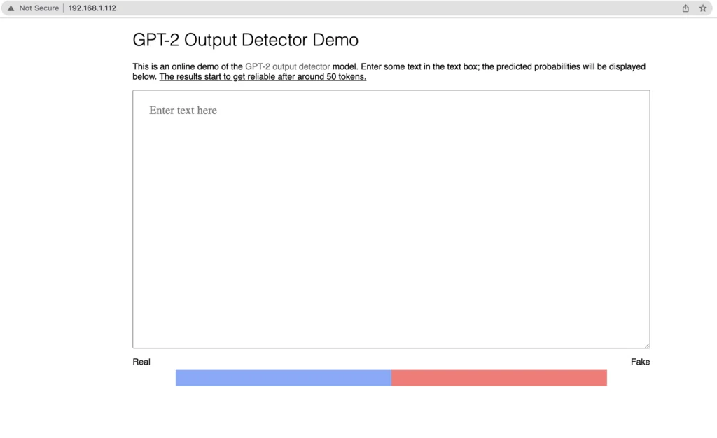 Once you ran all the above command, it will take may be 2 minutes and you can access your GPT Output detector, by visiting http://YOURIP:YOURPORT